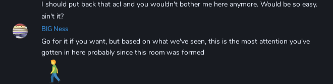 I join grin's room with q to fool around for a bit, the usual stuff, eventually we get banned by his buddy (the kind that would let a nigger fuck his wife). Then something odd happens grin decides to unban me and invite me back, believing he can "talk some sense into me" or whatever which is how his TSUNDERE NATURE became an ESTABLISHED FACT. Now I pop into his room to chat with him from time to time and decipher his broken English. We have a good time we get along. He makes funny jokes. He secretly likes the attention, he pretends he is going to acl ban us but its just a part of the tsundere act.