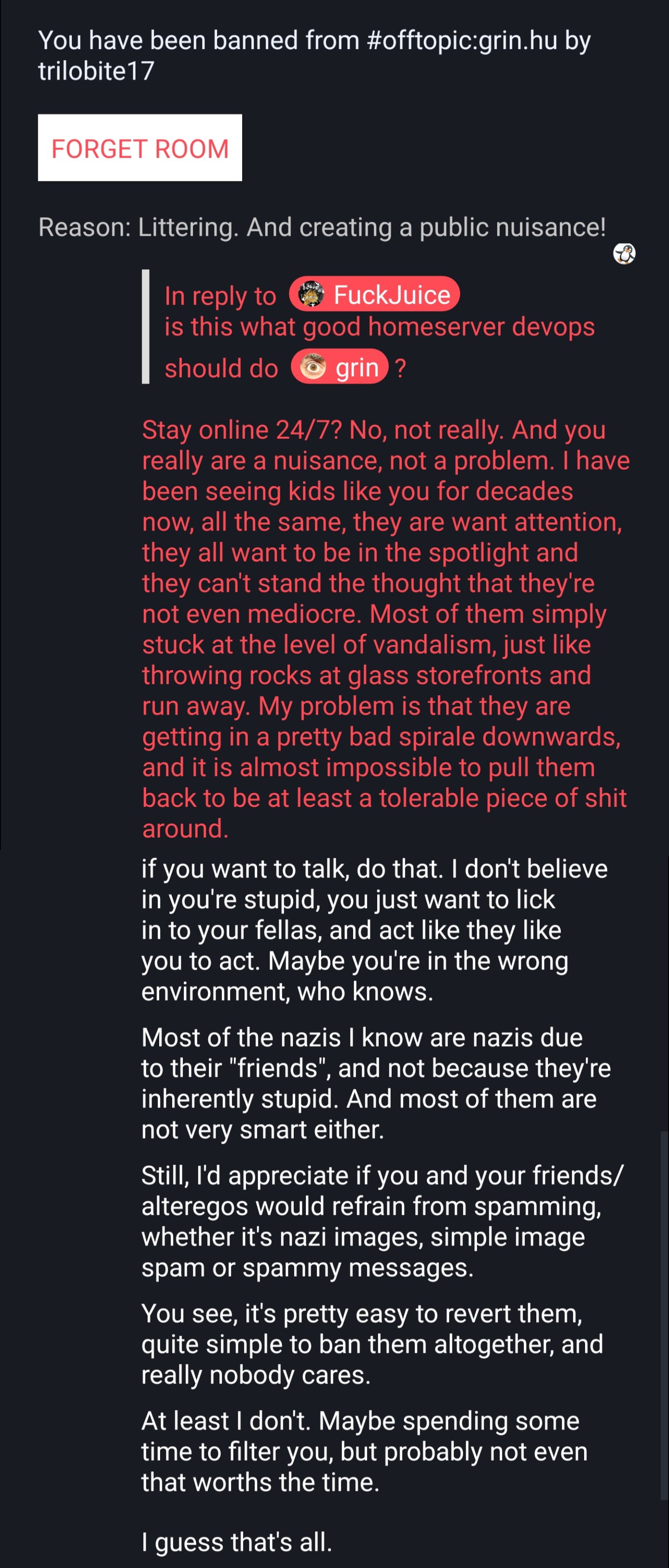 Grin's autism didn't allow him to appreciate my wonderful creation, so instead he asked his kid for a better meme, the meme we got was terrible, mine was far better.